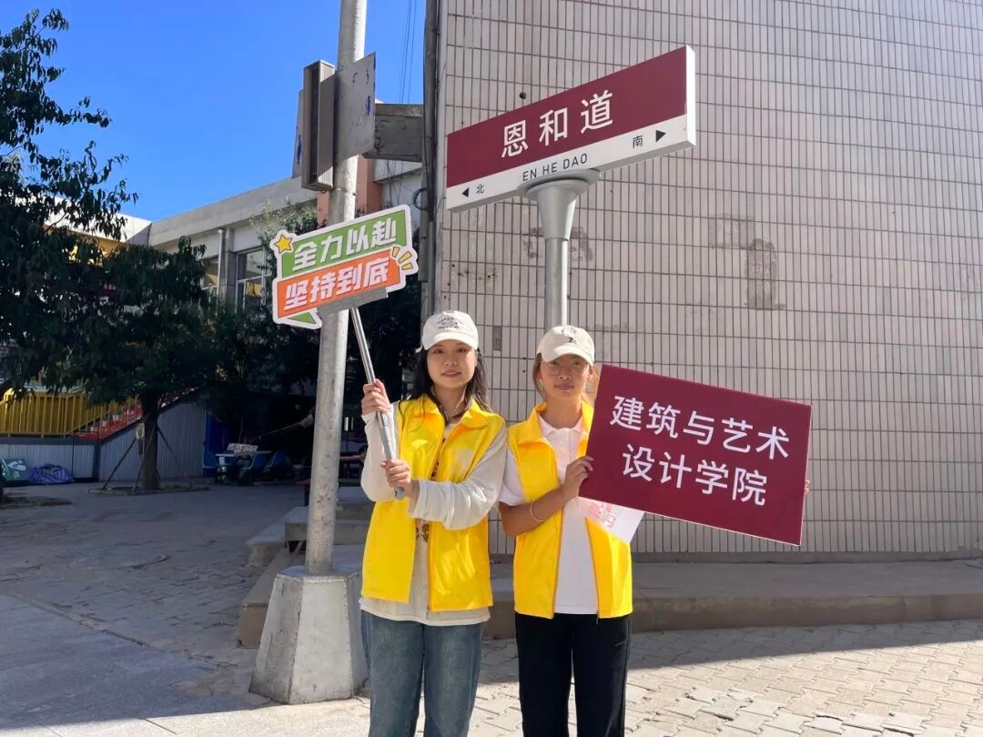建艺院黄色马甲忙碌的身影