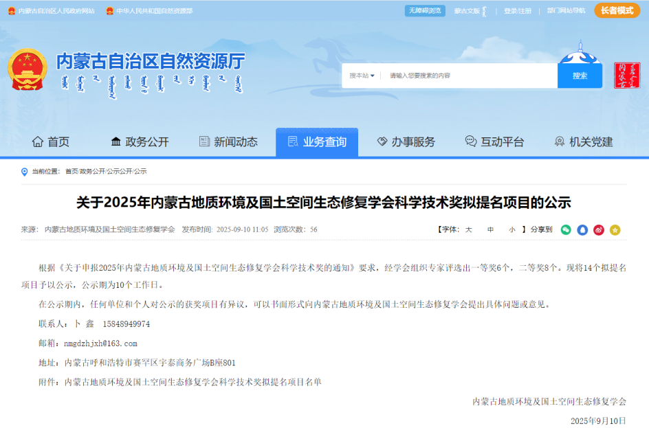 内蒙古自治区自然资源厅公布了2025年内蒙古地质环境及国土空间生态修复学会科学技术奖的评选结果。熟女a片